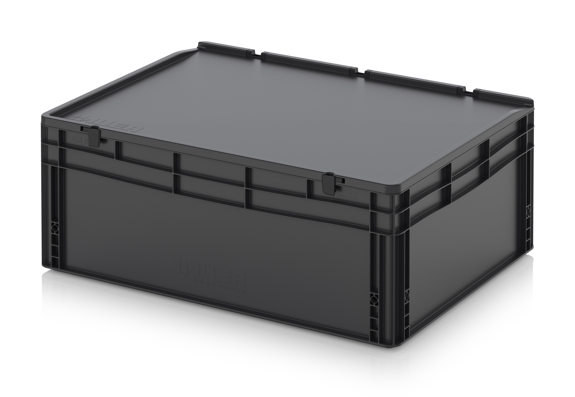 Евроконтейнер с ESD-защитой производства компании AUER Packaging изготавливается из антистатической пластмассы, что делает его пригодным, в частности, для надежного хранения и транспортировки электронной продукции.