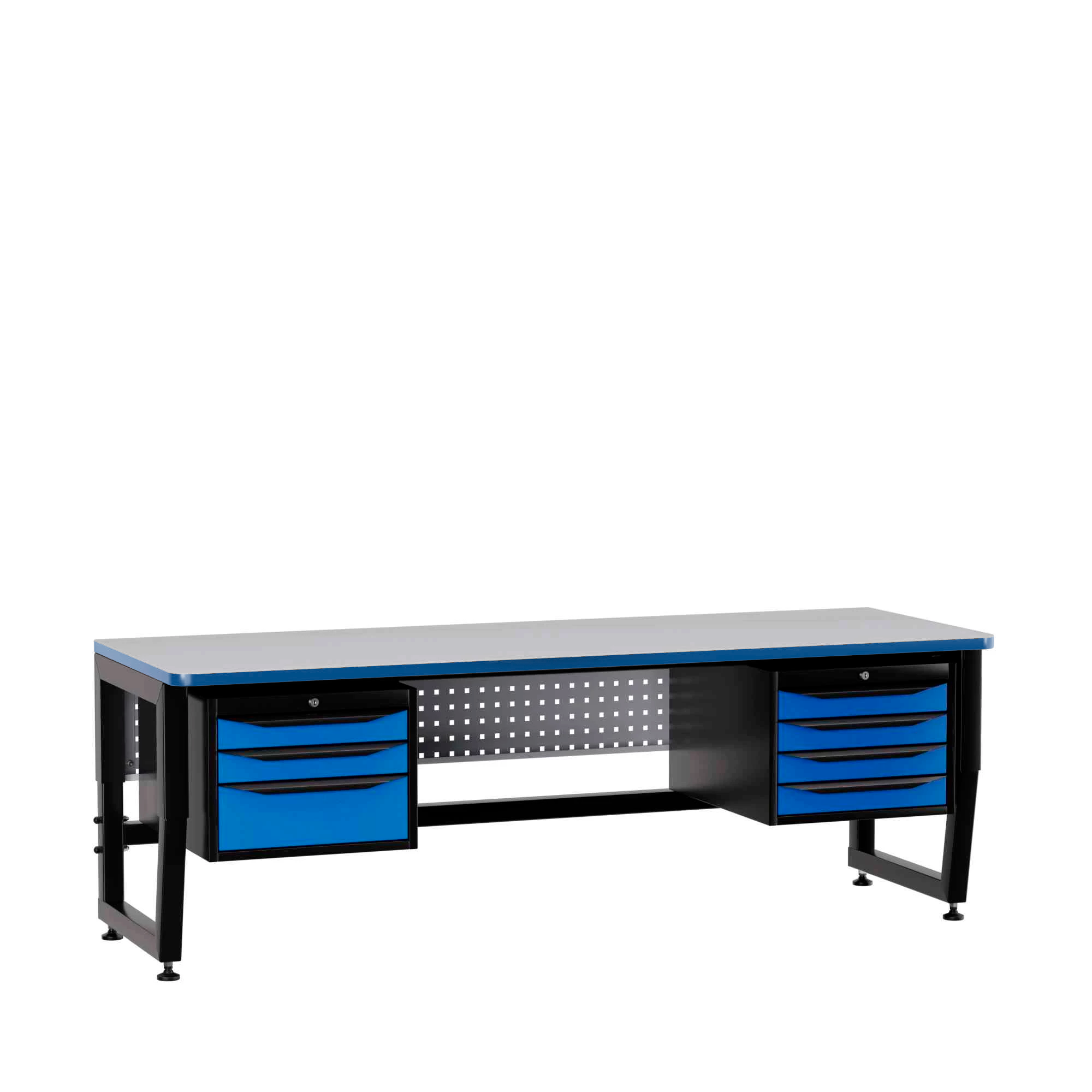 Столы могут быть укомплектованы подвесными тумбами с выдвижными ящиками. Внутренние размеры ящиков: большой ящик (ВхШхГ) — 127х400х508 мм, малый ящик — 52х400х508 мм, с максимальной нагрузкой до 30 кг при равномерном распределении. Также возможна установка экранов, блоков подключения коммуникаций, держателя системного блока и выдвижной полки для клавиатуры, что делает рабочее место максимально функциональным и удобным.