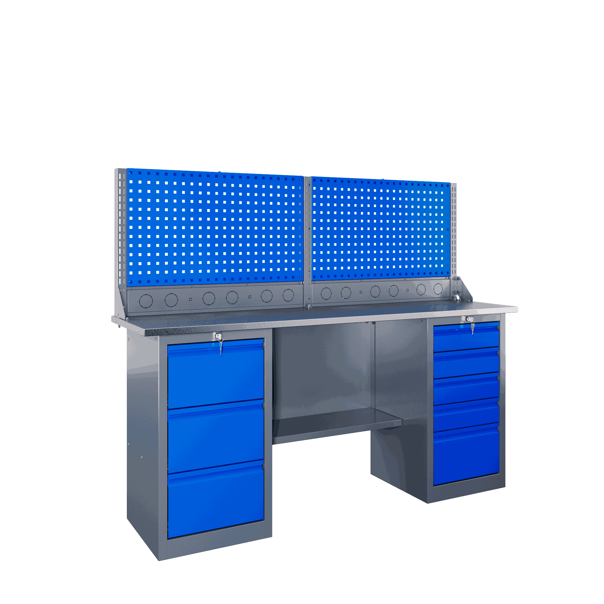 Самые компактные верстаки с глубиной столешницы 500 мм. Благодаря небольшой глубине, такие верстаки легко размещаются в ограниченных пространствах, например, в гаражах, мастерских и тд. Несмотря на компактные размеры, верстаки могут быть оснащены полками, ящиками и держателями для инструментов, что помогает поддерживать порядок и быстро находить нужные предметы.<br />