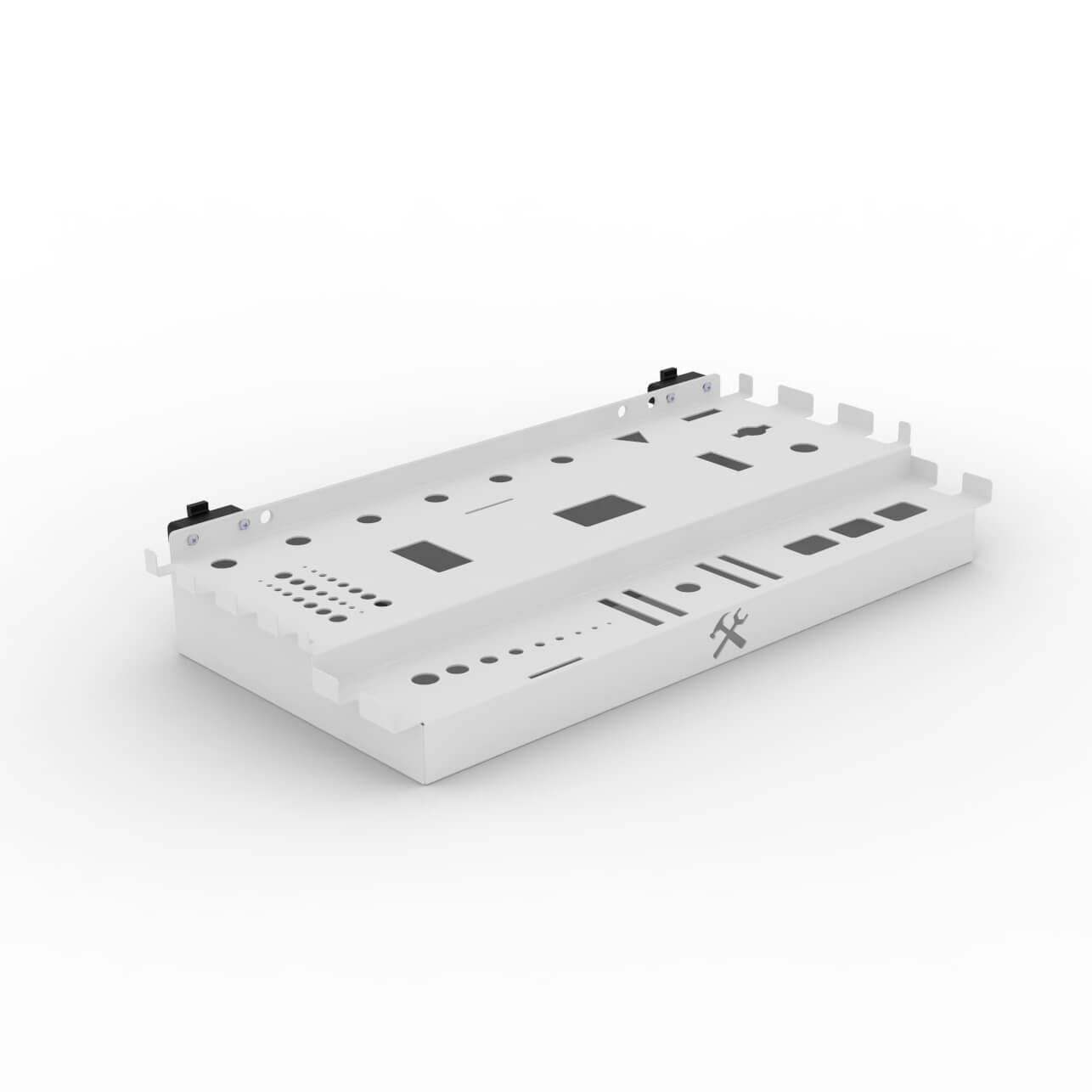 • Возможно три вида крепления: на винтах к перфорированной панели, на пластмассовый фиксатор к перфорированной панели или на шурупах к деревянной стене. Крепеж в комплекте.
