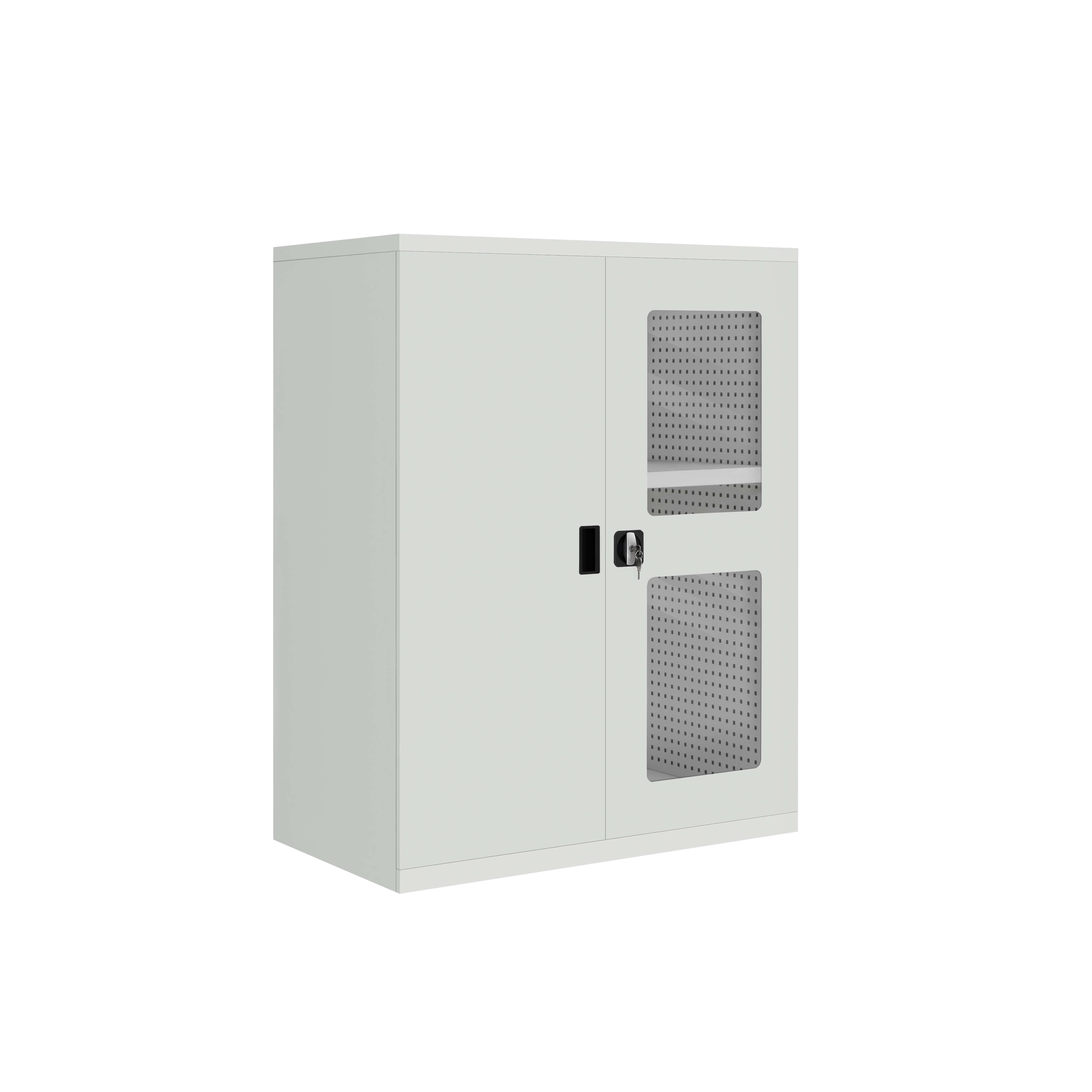 Шкаф для хранения инструментов ШХИ в стандартной комплектации имеет 2 перфорированные боковые стенки и 2 перфорированные задние стенки, что значительно увеличивает пространство для размещения необходимых инструментов.