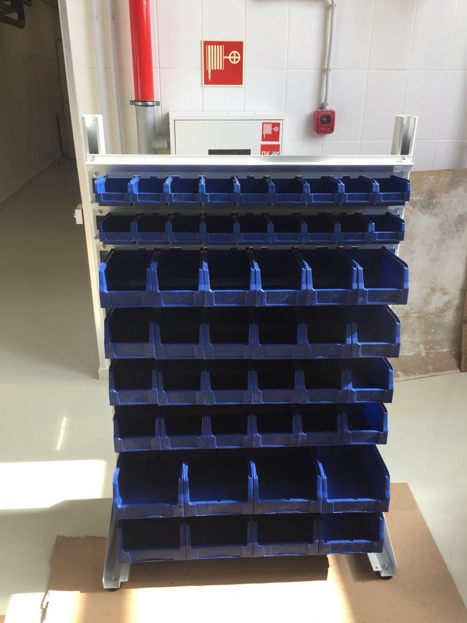 - Стеллажи могут комплектоваться лотками двух цветов: синий и красный, а также могут отгружаться и без лотков