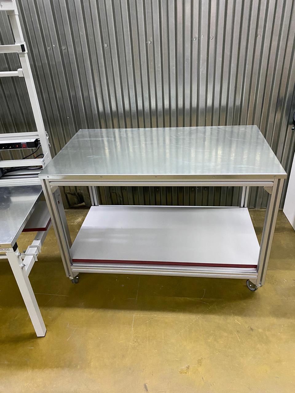 Стол подкатной ПС-КП из конструкционного алюминиевого профиля предназначен для размещения приборов, оборудования и их перемещения в рабочей зоне. Стол оснащен четырьмя колесными опорами, две из которых с механизмом фиксации. Конструкция позволяет оснастить стол электропанелью на 6, 8, 12 розеток, а также тумбой подвесной металлической ТПМ.