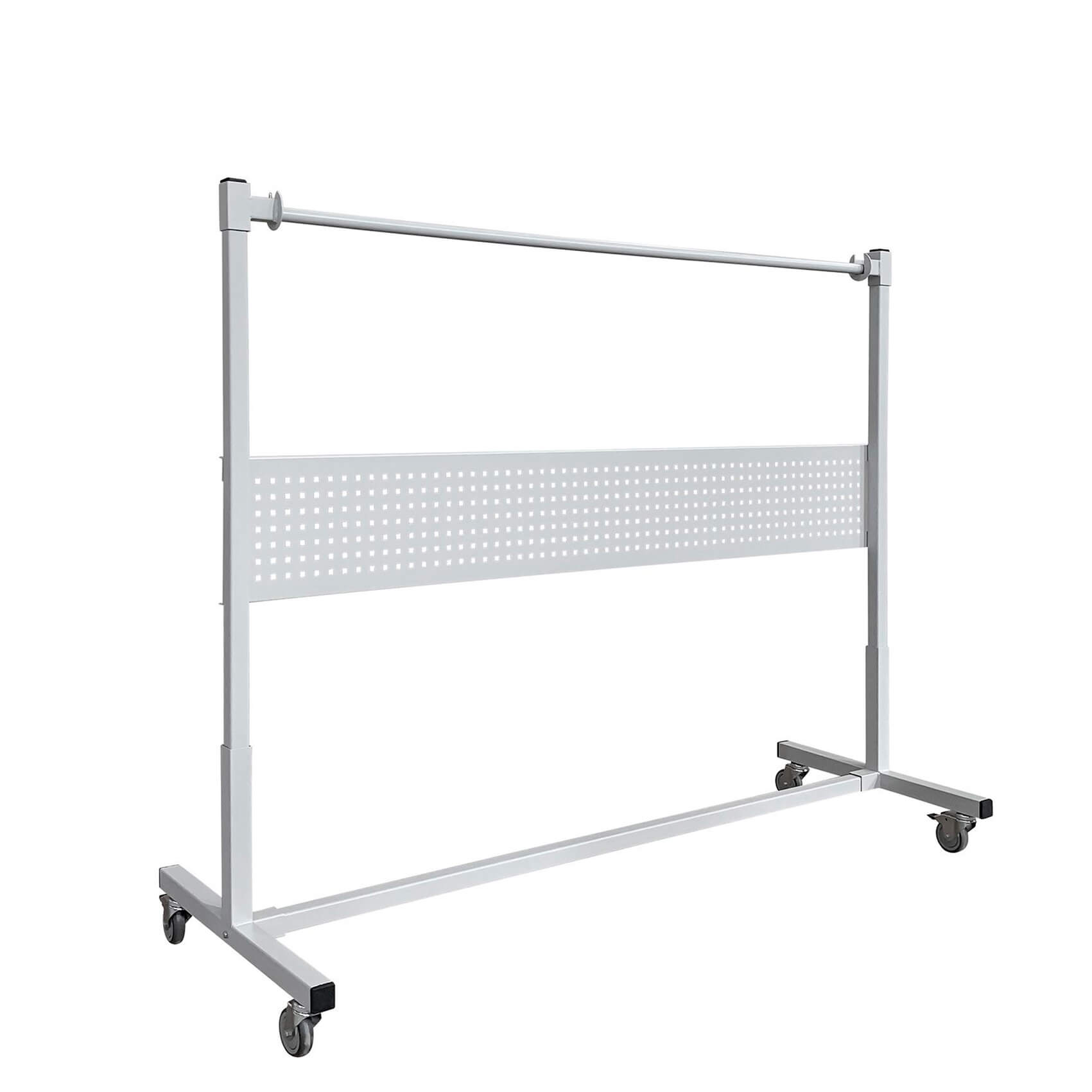 Стойка упаковочная для рулонов может быть использована для размещения и перемещения в рабочем пространстве рулонных материалов, таких как полиэтиленовая и воздушно-пузырчатая пленка, крафт бумага, а также рулонов с тканью. Стойка для рулонов изготовлена из металлического профиля шириной 35 мм и покрыта износостойкой порошковой краской RAL-7035. В стандартный комплект поставки входит: держатель для рулона — 1 шт., перфопанель — 1 шт.
