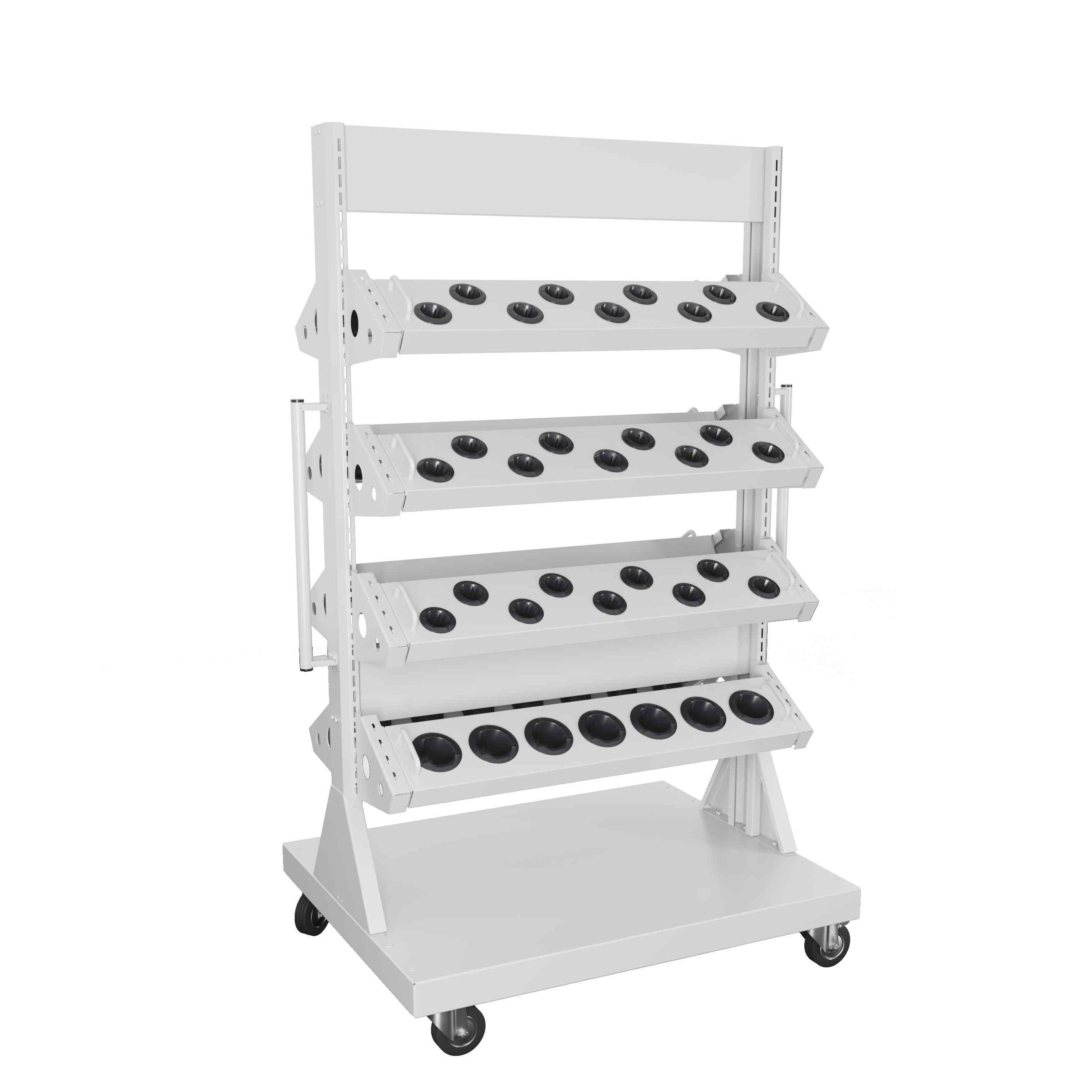 Стойка на базе платформы Constructor оснащена двумя съемными полками под оснастку SK 50, и шестью съемными полками под оснастку SK40 с допустимой нагрузкой на кассету до 50 кг., для размещения, хранения и транспортировки различных инструментов и оснастки, используемых в станках.
